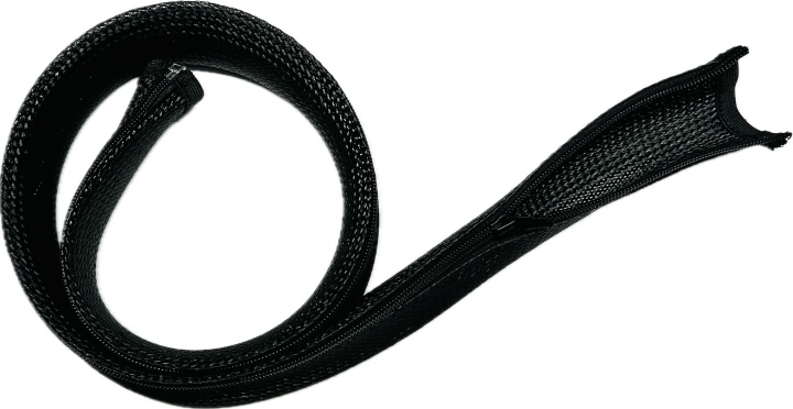 TUBE - flexibler Gewebekabelstrumpf mit Reißverschluss, Durchmesser an den Enden 25mm, Gewebe dehnbar auf ca. 50mm, Fassungsvermögen max. ca. 6 Netzanschlusskabel, Länge 1m, Material: Polyester, flammwidrig, schwarz, by power concepts