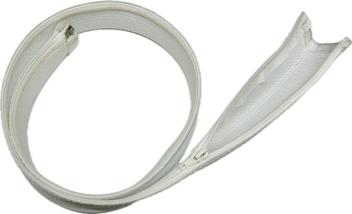TUBE - flexibler Gewebekabelstrumpf mit Reißverschluss, Durchmesser an den Enden 25mm, Gewebe dehnbar auf ca. 50mm, Fassungsvermögen max. ca. 6 Netzanschlusskabel, Länge 1m, Material: Polyester, flammwidrig, weiß, by power concepts
