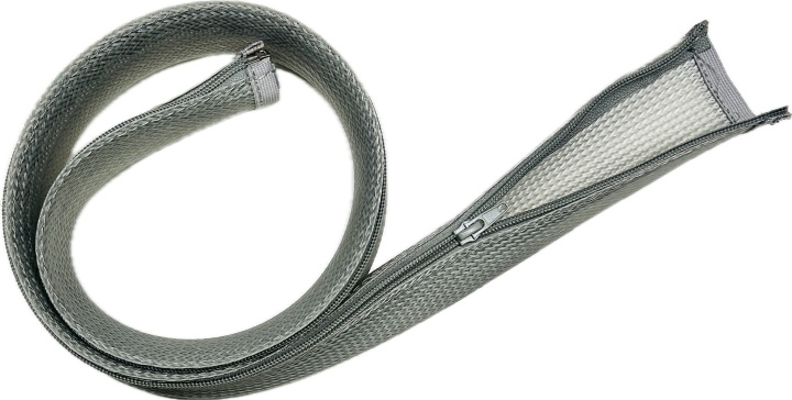 TUBE - flexibler Gewebekabelstrumpf mit Reißverschluss, Durchmesser an den Enden 25mm, Gewebe dehnbar auf ca. 50mm, Fassungsvermögen max. ca. 6 Netzanschlusskabel, Länge 3m, Material: Polyester, flammwidrig, hellgrau, by power concepts