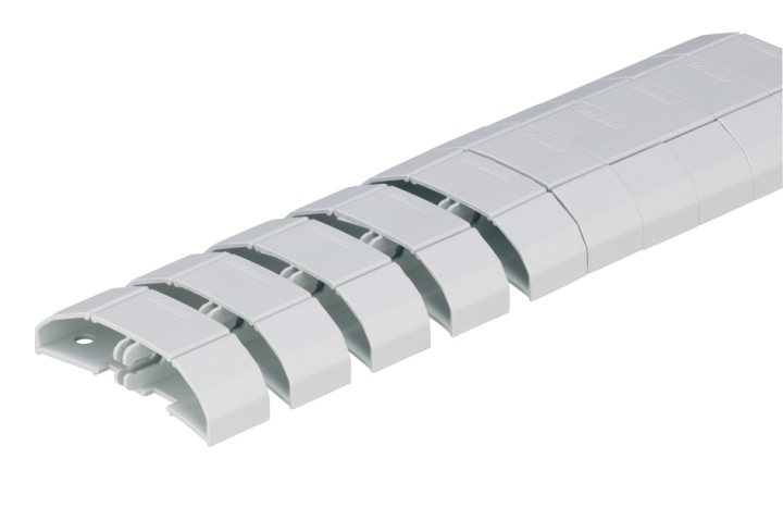 EVOline WireLane - Untertischkanal, Kunststoff grau( RAL 7035), verschraubbar, verkettbar, biegsam, 30 Einzelglileder pro Verpackung, L650-1000xB83xH21,8mm