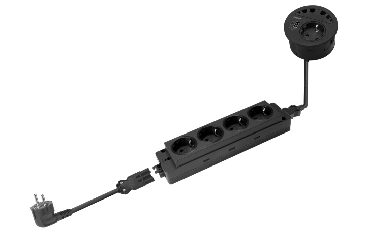 EVOline Circle80 - 1xVDE-Steckdose, 1 x USB-Charger Typ A+C 18W, 1m Kabel und GST18-Stecker, Kunststoff schwarz