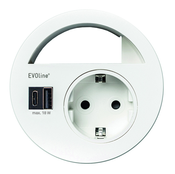 EVOline Circle80 - 1xVDE-Steckdose, 1 x USB-Charger Typ A+C 18W, 1m Kabel und GST18-Stecker, Kunststoff schwarz
