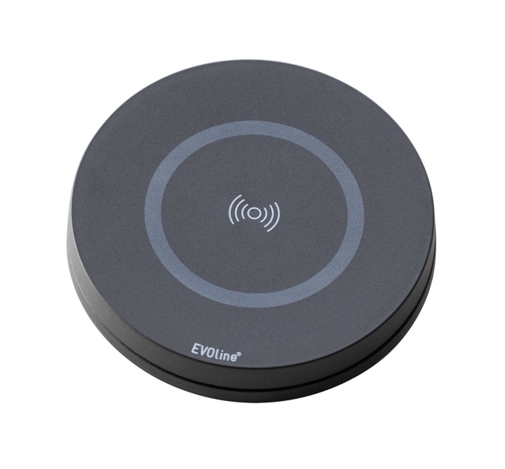 EVOline Drehdeckel DisQ - Passend für Circle80 und Access (inkl. Netzteil), drahtlose Ladefunktion, drehbar um 270°, Leistung: 5 W/7,5 W/10 W/15, mit Magnetzentrierung; 1,5 m, Anschlusskabel mit USB-C Stecker Steckernetzteil 20 Watt: USB-A Output: DC 5V/3A, 9V/2A,12V/1.5A (18 Watt); USB-C Output: 5V/3A, 9V/2.22A, 12V/1.67A (20 Watt), Kunststoff schwarz