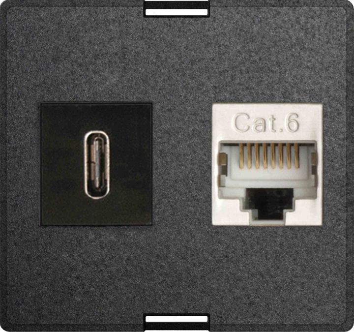 EVOline Wechselmodul (50mm) - USB 3.1 Typ C mit 1m Kabel und USB-C Stecker + RJ45 Cat6 geschirmt mit Buchse-Buchse ohne Kabel, schwarz