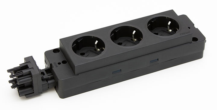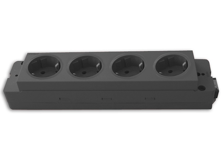 EVOline Express 4-fach - 4-fach VDE-Steckdosen, 250V, 16A, GST-Steckverbinder mit SET-Zugentlastung, ohne Berührungsschutz, versilberte Kontakte, halogenfreier und selbstverlöschender Kunststoff, schwarzAbmessungen (H/B/L): 46 x 60 x 250mm