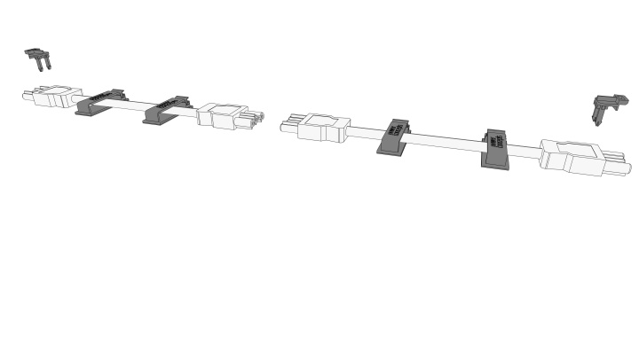 Kabelbaum EX-Set 1400 - Zur Untertischverkabelung für Seminartische Länge 1.400mm bestehend aus: 2 x 800mm Kabel 3 x 1,5 mm², 250V, 16A, GST-Steckverbinder, 8 x CLAMP, 1 Paar GST-Kabelverriegelungsclips