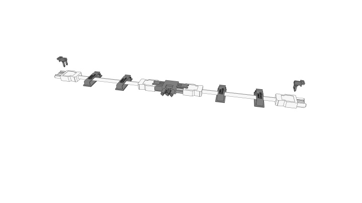 Kabelbaum T-Set 1800 - Zur Untertischverkabelung für Seminartische Länge 1.800mm bestehend aus: 2 x 1.000mm Kabel 3 x 1,5 mm², 250V, 16A, GST-Steckverbinder, 1 x GST T-Verteiler flach 1E 2A, 8 x CLAMP, 1 Paar GST-Kabelverriegelungsclips