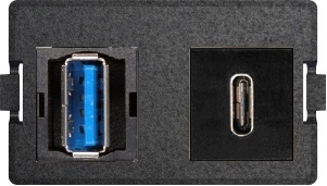EVOline Wechselmodul (25mm) - USB 3.0 Typ A mit Buchse-Buchse ohne Kabel + USB 3.1 Typ C mit 1m Kabel und USB-C Stecker, schwarz