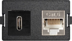 EVOline Wechselmodul (25mm) - USB 3.1 Typ C mit 1m Kabel und USB-C Stecker + RJ45 Cat6 geschirmt mit Buchse-Buchse ohne Kabel, schwarz